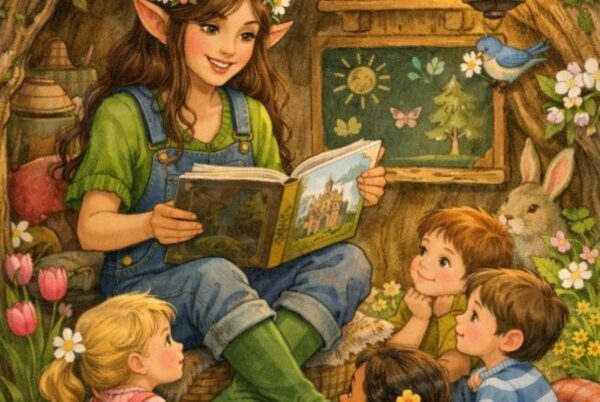 Tijdens een bezoek van De Groene Elf verandert de ruimte even helemaal. Een klaslokaal wordt een bos. Een woonkamer een sprookjesplek. Kinderen luisteren, helpen en stappen zélf het verhaal in.