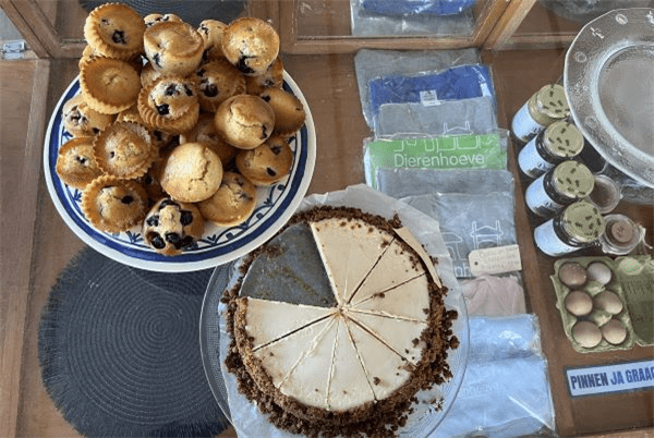 Het aanbod is grotendeels biologisch en/of fairtrade, met keuze uit heerlijke huisgemaakte koeken en taarten, tosti’s van lekker dik desembrood, verschillende soepen en nog veel meer lekkers. De producten worden zoveel mogelijk uit de omgeving gehaald.