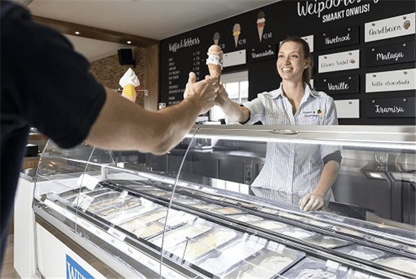 Uit eigen keuken bieden zij een uitgebreid assortiment ambachtelijk en puur bereid schepijs, room- en sorbetijs aan. Bereid met verse koemelk!