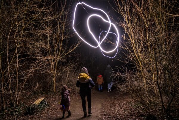 Een betoverende wandeling door het donkere bos, langs prachtige lichtkunstwerken!