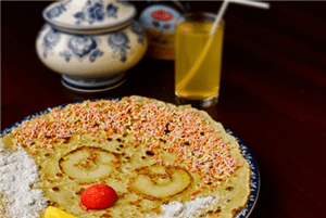 De heerlijke pannenkoeken bij dit sfeervolle pannenkoekenhuis worden geserveerd op mooie (en grote) Delfts blauwe borden!