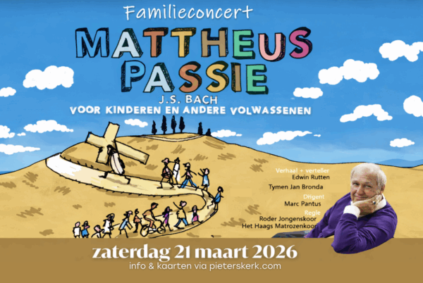Hoe laat je kinderen kennismaken met de betoverende muziek van Johann Sebastian Bach? Edwin Rutten, bekend als ‘Ome Willem’, neemt kinderen en volwassenen mee op een muzikale reis door de Mattheus Passion in een bijzondere familievoorstelling. Ook de locatie is bijzonder: de prachtige Pieterskerk midden in Leiden!