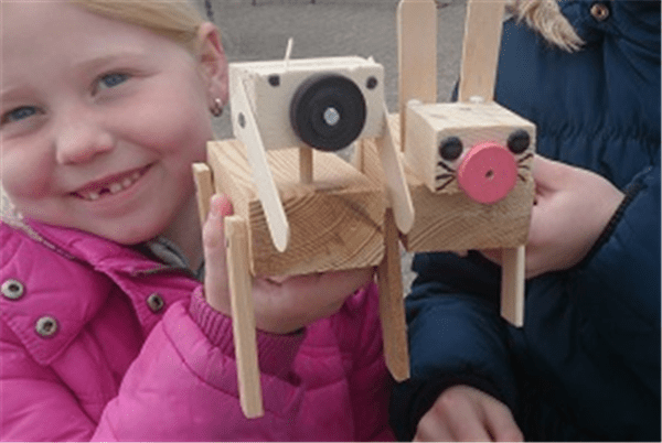 We gaan ontwerpen met stukkenhout, aan de slag met een boor, timmeren en versieren.