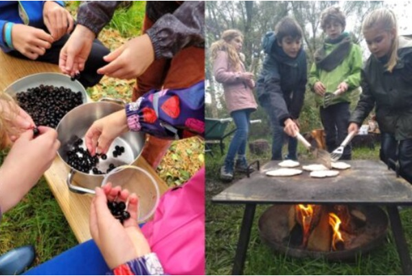 De jonge voedselboswachters zijn druk met van alles. Denk aan appels enten, hout zagen, soep maken, insecten onderzoeken, lentesalade maken, jam koken, bessen plukken en broodjes bakken.