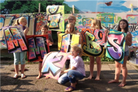Cool! Met de kinderfeestjes van VijfB in Alphen a/d Rijn maak je je eigen graffiti kunstwerk!