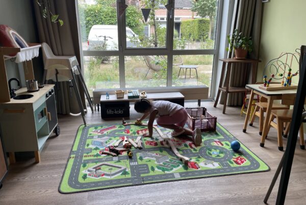 Er staat altijd iets lekkers klaar, een gezond fruitje en een drankje, en in de speelhoek kunnen kinderen zich uitleven met een houten trein, keukentje en kleurspullen.