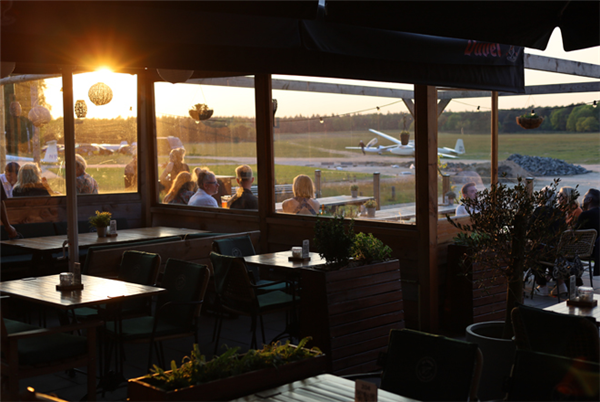 Naast een gezellig binnencafé zit je op het windvrije terras met verwarmde stoelen en loungebanken gedurende het hele jaar heerlijk, met in de zomer genoeg activiteit van stijgende en landende zweefvliegtuigen. Wedden dat je kinderen niet uitgekeken raken? Zo mooi om te zien!