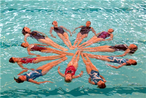 De sierlijke figuren van synchroonzwemsters doen denken aan de capriolen van dolfijnen: spetterend en spectaculair! Je beweegt op muziek in het water in mooie badpakken, met make-up en een kroontje in het haar.