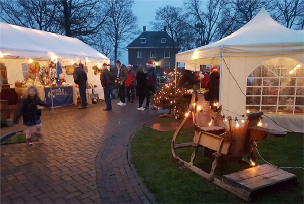 Struin langs kraampjes en geniet van kerstmuziek tijdens de kerstmarkt bij De Lage Hof in Overasselt.