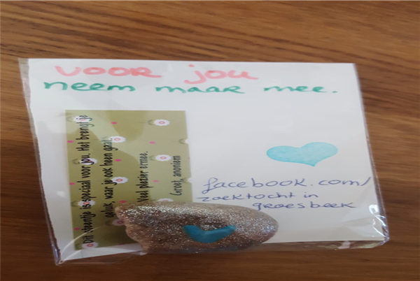 Dit om een beetje positiviteit te brengen in de soms moeilijke tijden. Een beetje vriendelijkheid, een glimlach op het gezicht van de vinder, daar doen ze het voor. Af en toe worden er updates geplaatst op de facebookpagina van Zoektocht in Groesbeek als ze weer iets nieuws gedropt hebben.