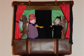 Poppentheater De Kofferkast is een prachtige mobiele poppenkast gemaakt van een oude koffer!