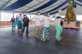donderdag 25 december Winterse rolschaatspret tijdens de Nijmeegse Winterweken, met uitzicht op de Waal.
