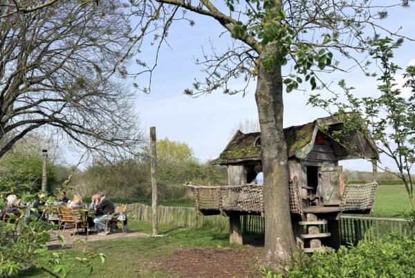 Vlak voor we de fietsen weer inleverden, zijn we gestopt bij Nieuw Westert. Eén van onze favoriete plekjes rondom Egmond. Met een heerlijk terras, stoeltjes in het gras, uitzicht op echt een fantastische boomhut voor kinderen en met een flink speelbos ernaast. Zo’n plekje waar je uren kunt zitten. Koffietje doen, lunchen, borrelen. Bijkletsen, een boekje lezen of gewoon genieten van het mooie uitzicht!