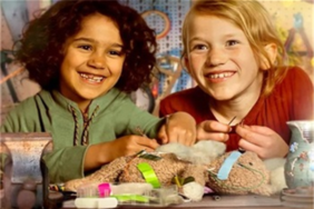 Helaas, dit is al geweest. Twee kinderen uit verschillende milieus repareren spullen in een Repairshop.
