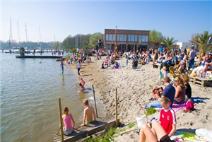 Terwijl de kids spelen op het strandje aan het IJsselmeer, geniet jij van een hapje en drankje!