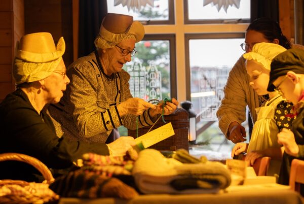 Knutselen met vrijwilligers van Behoud Westfries Kostuum: leren breien