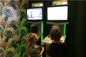 Kids uitgegeten, maar de anderen nog niet? Dan kunnen de kinderen lekker spelen in de kinderkamer met de spelcomputer, tafelvoetbal/airhockey of een ander stuk speelgoed.