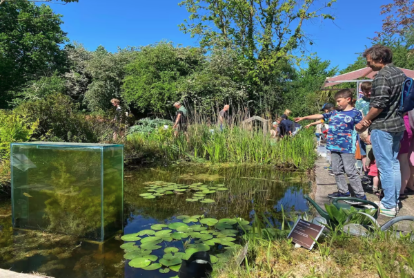 Je hoort meer over welke waterdiertjes, vissen en kikkers hier leven. En je krijgt uitleg over de bittervoorn: deze zeldzame visjes zwemmen in de vijver en natuurlijk ook Koos de Karper.