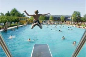 Een groot openluchtzwembad met verwarmd zwemwater in Zwaag, vlakbij Hoorn!