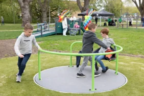 Fijn samen spelen met de rolstoeltoegankelijke speeltoestellen in het Vondelpark Papendrecht!