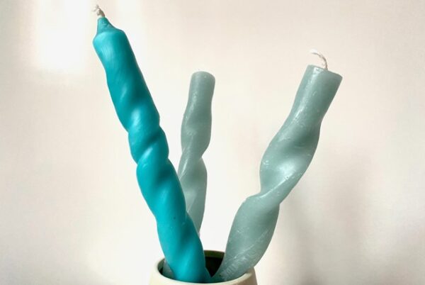 Handig: Laat de kaarsen een paar uur drogen zodat ze makkelijk aan te steken zijn. Gebruik voor het aansteken een oud bord of kaarsenplateau, want ze gaan met deze prachtige vormen een beetje lekken 😉