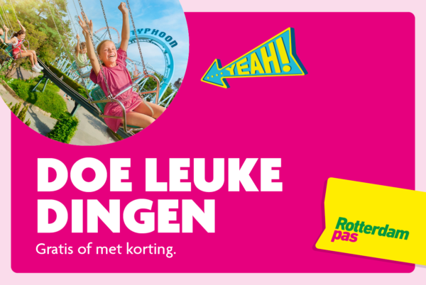 Naast deze leuke uitjes vind je op de website van Rotterdampas Deze link opent in een nieuwe tab nog véél meer activiteiten die je gratis of met korting met de pas kunt doen. Ook lees je daar meer informatie over de pas. Klik hieronder via de roze button door voor alle acties, boek een tof uitje en ga op pad!
