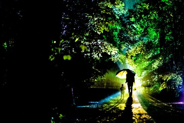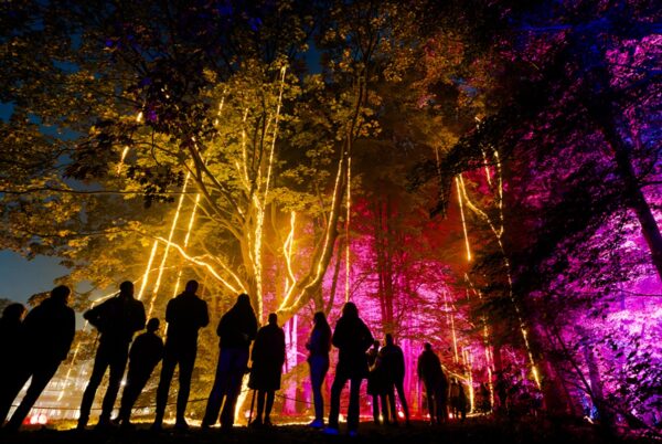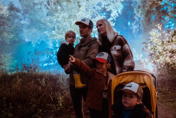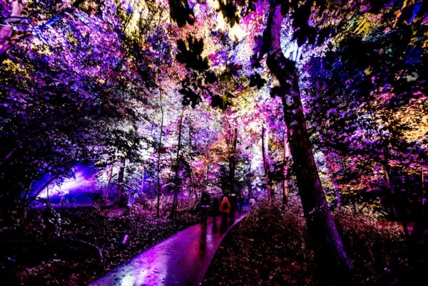 Twee kilometer lang dwalen jullie langs lichtprojecties, fluisterende bomen en fascinerende klanken. Alles klopt: het donker, de geuren van het bos en de verrassende effecten. Het voelt alsof je midden in een andere wereld belandt.