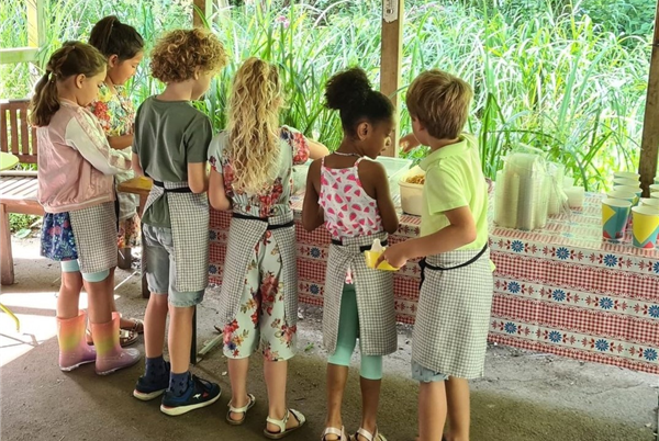 Op de locatie kinderboerderij De Wilgenhof (vrijdag en zaterdag) en op de locatie Drrroomland (woensdag, vrijdag en zaterdag) worden de kinderen ontvangen in de Kinderkeuken. Eerst wordt er gezongen voor de jarige, daarna gaan de schorten om en kan het kookfestijn beginnen. Leuk is dat de kinderen echt heel veel zelf mogen doen, uiteraard onder toezicht van de twee dames die de scepter zwaaien in de Kinderkeuken.