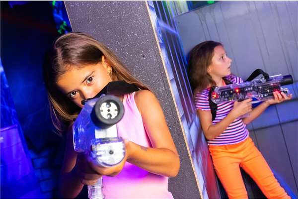 In de nieuwe Lasergame Arena ga je met je vriendjes en vriendinnetjes de strijd aan. Wie scoort de meeste punten? Schuilen achter muren, zodat je niet geraakt wordt. Maar kom niet te dicht bij het ‘magische vat’.