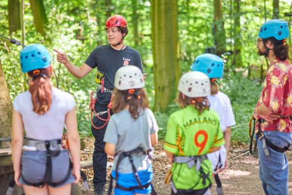 In het klimbos beweeg je je via touwen, ladders, bruggen en tokkelbanen door de bomen. Er zijn 9 verschillende parcoursen, op hoogtes van 2,5 tot 15 meter. De instructeurs houden toezicht vanaf de grond en helpen waar nodig, zodat jullie veilig en met vertrouwen kunnen klimmen.