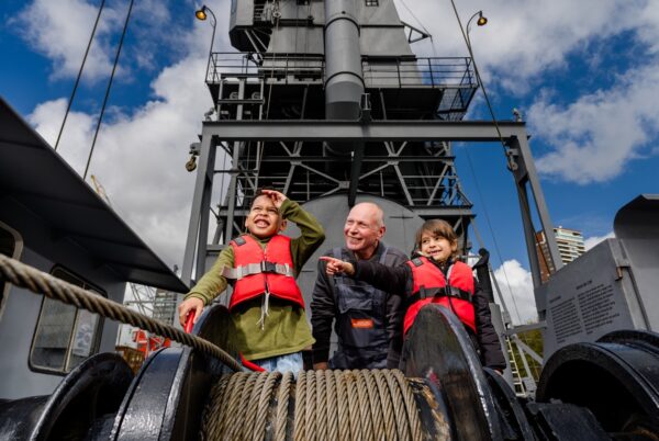 Ook buiten is er van alles te zien, met historische schepen en een levendige havenomgeving. Dat maakt het bezoek nét even anders dan een standaard museumbezoek. Stap aan boord en zie hoe het was om op een schip te wonen en te werken. Oefen je schoonmaak skills bij het zwabberen aan boord van stoombok ‘Simson’ of leer een zeemansknoop leggen aan boord van de ‘Gruno’. Klimmen, kijken en ontdekken!