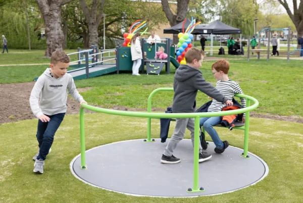 Fijn samen spelen met de rolstoeltoegankelijke speeltoestellen in het Vondelpark Papendrecht!