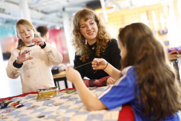 Kinderen ontdekken wat recycling en upcycling betekenen en onderzoeken wat stof allemaal kan zijn: een materiaal dat herinneringen bewaart, vertrouwd voelt of iets vertelt door kleur en patroon. Door te knippen, naaien, combineren en experimenteren met verschillende materialen voegen ze elk hun eigen stukje toe aan het gezamenlijke kunstwerk.