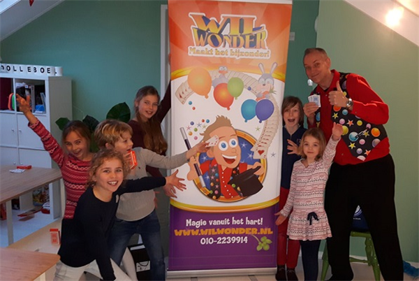 Wil Wonder is al 35 jaar goochelaar voor kids en beschikt over vele programma’s (kinderfeestjes aan huis, shows, Wondershops, goochellessen….). Een geweldige goochelaar die ruim voldoende ervaring heeft in het werken met kinderen die speciale aandacht nodig hebben. Zo is hij 10 jaar allround vrijwilliger geweest bij Make A Wish en nu 15 jaar vrijwilliger bij Stichting Magic Care (als vrijwillig goochelaar), waar hij onder meer enkele jaren in duo’s in het Sophia Kinderziekenhuis Rotterdam (IC’s…) langs de bedden ging om met kids te goochelen.