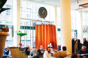 Op de Kop van Zuid, in het Entrepotgebouw, kun je heerlijk eten bij restaurant café Okay!