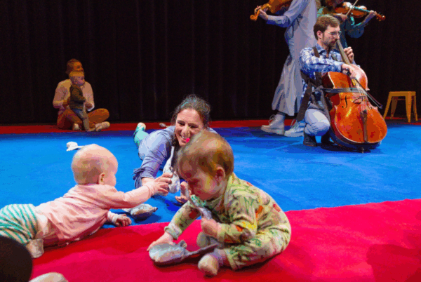 Krulmuziek maakt met viool, altviool, cello en muzikaal speelgoed een vrolijk en betoverend mini-concert.