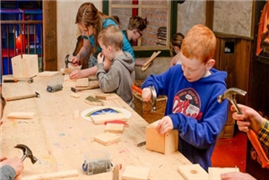 De bovenverdieping is helemaal ingericht als knutsel-, timmer- en bouwruimte voor de creatievelingen. Met mooi weer kunnen kinderen heerlijk spelen en genieten in de buitenspeeltuin.