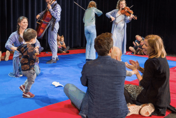 Je dreumes is welkom op het grote kleed. Vlakbij de drie muzikanten die mooie kerstmuziek spelen. Jouw kleintje mag zelfs meedoen: samen dansen, spelen met het muzikale speelgoed en aan het eind van het concert zelfs een échte viool vasthouden.