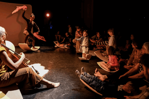 En het leukste? In de tweede helft van de voorstelling mag je zelf meedoen. Samen met de artiesten kun je klanken ontdekken, bewegen en spelen.