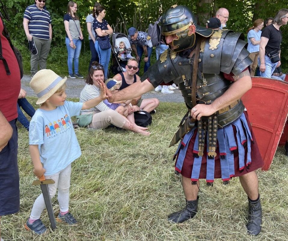 De sfeer tijdens de Germanentage is levendig en gezellig. Op verschillende plekken in het park zijn demonstraties en voorstellingen. Je ziet gevechtstechnieken, marsformaties en de beroemde ‘schildpadformatie’ van de Romeinen. Spannend om te zien, zonder dat het te heftig wordt voor jonge kinderen.