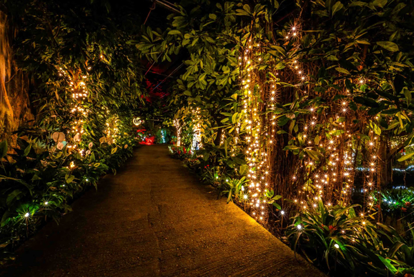 Laat je betoveren tijdens een van de lichtjesavonden in de tropische tuinen van Emsflower.