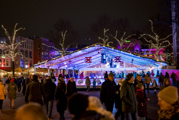 Ook al dalen de temperaturen onder het vriespunt, de binnenstad laat zich van haar warmste kant zien. Op de Oude Markt staat een ijsbaan waar je heerlijk over het ijs kunt schaatsen.