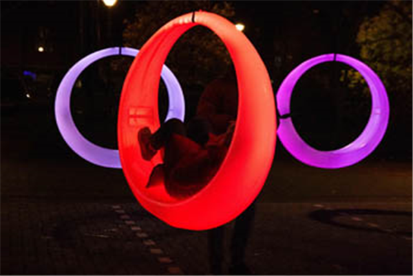 Leuk voor kinderen en volwassenen! Schommel in de prachtige Led Swings in het park. Ook is er een lichtshow waterorgen en een levensboom.