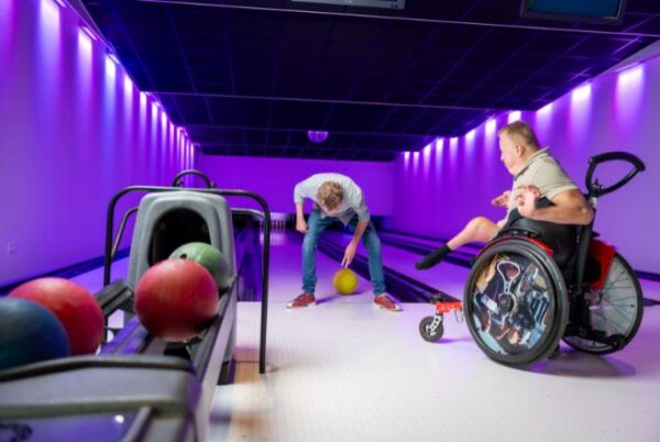 Daarnaast hebben ze ook gelijkvloerse bowlingbanen, waardoor ook kinderen in een rolstoel aan dit leuke spelletje mee kunnen doen. Ze hebben op de bowlingbaan een speciale beugel, waarvan zij de bal af kunnen laten rollen. Ook kunnen kinderen met een lichamelijke beperking hier een potje lasergamen of de zoet- en zoutwateraquaria bewonderen, gaaf!