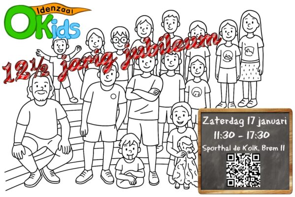 Het jubileum wordt gevierd in sporthal de Kolk. Iedereen is van harte welkom om tussen 11:30 uur en 17:30. Met leuke programma’s van Jeugdcircus Tubantino, The O-Kids (niet te verwarren met OKids) en nog meer.