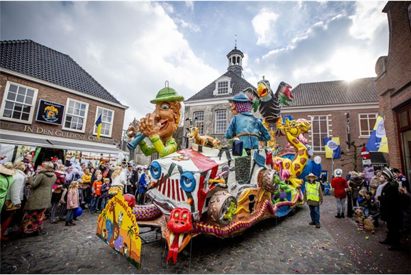 Bewonder de praalwagens en grote loopgroepen tijdens de carnavalsoptocht in het centrum van Ootmarsum.