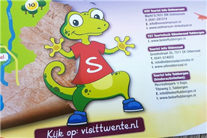 De pientere salamander Sammy wil graag samen op ontdekkingstocht. Er is namelijk altijd wat te beleven in Noordoost-Twente. De Tourist Info’s in Noordoost-Twente hebben een gezamenlijke kinderschatkaart uitgegeven. Dat is een overzichtelijke plattegrond van Noordoost-Twente met daarop de musea en kinderactiviteiten duidelijk getekend en een overzicht van kinder-doe-locaties per categorie. Zoals bijvoorbeeld: midgetgolf, kinderboerderijen en speeltuinen.