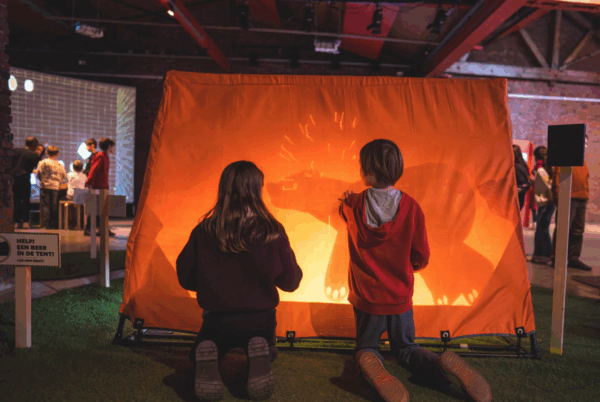 Een interactieve installatie van gamemaker Leon van Oldenborgh. Er zit een beer in de tent en om de beer eruit te krijgen, moet je de regels negeren, improviseren en misschien zelfs een beetje falen. De installatie In the Event of a Bear: ??? is een doorontwikkeling van het op jonge mensen gerichte werk “Help! A Bear In My Tent” van Marieke van der Burg en Leon van Oldenborgh. Voor deze museumnacht editie is de installatie toegankelijk gemaakt voor volwassenen bezoekers. Heb jij het lef om de beer onder ogen te komen?