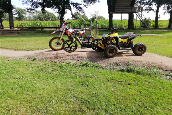 Zoek je een stoer uitje voor kinderen? Denk dan eens aan crossen op een quad of een motor. De baan is geschikt voor kinderen van 4 t/m 13 jaar. Alle leeftijden vinden een uitdaging die voor hen geschikt is. Er zijn mini quads, (4 t/m 6 jaar) en quads (7 t/m 9 jaar). De maximale lengte voor de quad is +/- 143 cm.