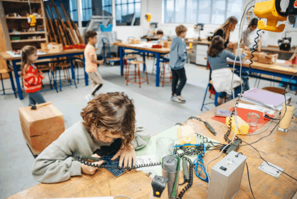 is voor kinderen vanaf 4 jaar. Ze kunnen zelf aan de slag, met wat hulp van ouders/grootouders. Voor de technische uitdagingen kun je de hulp inschakelen van de deskundige begeleiders. Je kunt o.a. kiezen uit: